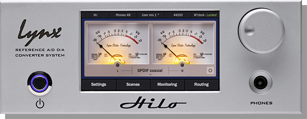Hilo displays real-time, accurate metering and analysis. Dual horizontal, VU analog, all I/O and spectrum analysis cover all tasks.